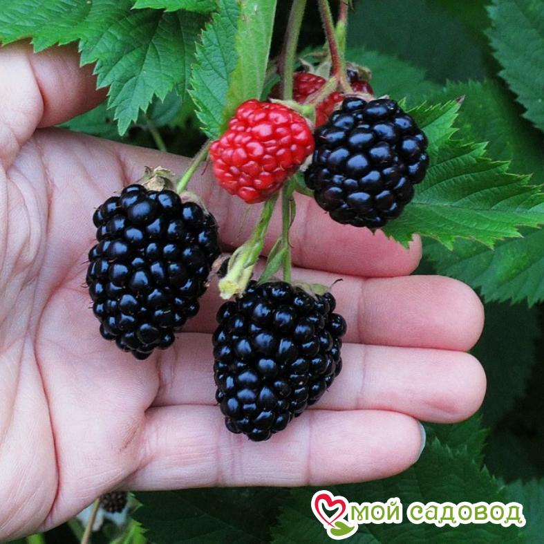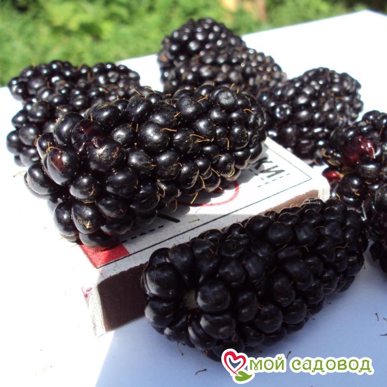 Ягоды очень крупные, средним весом 8 г, овальной формы, с мелкими семенами. Зрелая ежевика тёмно-фиолетового цвета, имеет глянцевый блеск с синим или бордовым оттенком. Растёт обильной гроздью. Созревают ягоды в конце июля — середине августа. Созревание растянуто по времени, что даёт возможность снимать урожай до конца октября. Вкус ежевики сорта Тройная Корона сладко-кисловатый, без приторности. Отмечается приятное послевкусие с вишнёвыми или сливовыми нотками. Ягоды отличаются плотной мякотью, очень сочные и ароматные. Ежевика употребляется как в свежем виде, так и в форме различных заготовок — варенья, компота, джема, сока. Как и большинство сортов ежевики, Тройная Корона имеет низкую зимостойкость и не выдерживает сильных холодов. Для неё критичны морозы уже до 18–20 °С. Чтобы сохранить растения во время зимовки, осенью после обрезки их подготавливают к укрытию на зиму. Стебли предварительно связывают в пучки, затем укладывают на землю. Для закрепления уложенных побегов используют специальные скобы или крючки. Подготовить ежевику к зимовке нужно до первых заморозков, так как при температуре воздуха -1 °С стебли становятся хрупкими и ломкими. Преимущество сорта: Красивые крупные ягоды. Высокая (для десертного сорта) урожайность. Отличная транспортабельность ягод. Высокая устойчивость к жаре и засухе. Высокая устойчивость к болезням и вредителям. Ягоды последнего сбора по размеру почти не отличаются от первых. ПОСАДКА Саженцы ежевики лучше всего высаживать в небольшую траншею осенью в конце сентября или весной в апреле, не дожидаясь высокой температуры воздуха, чтобы саженцы успели прижиться. После посадки поливают, окучивают и  поверх мульчируют перегноем, древесными опилками или торфом.